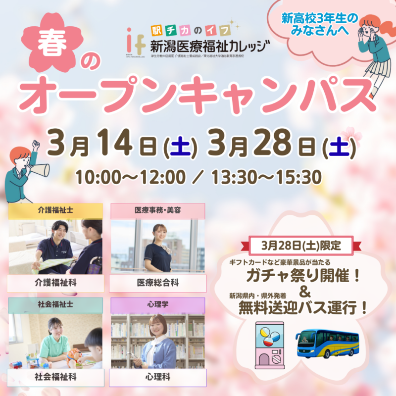 【新高校3年生のみなさんへ】春のオープンキャンパス開催🌸【ガチャ祭り】