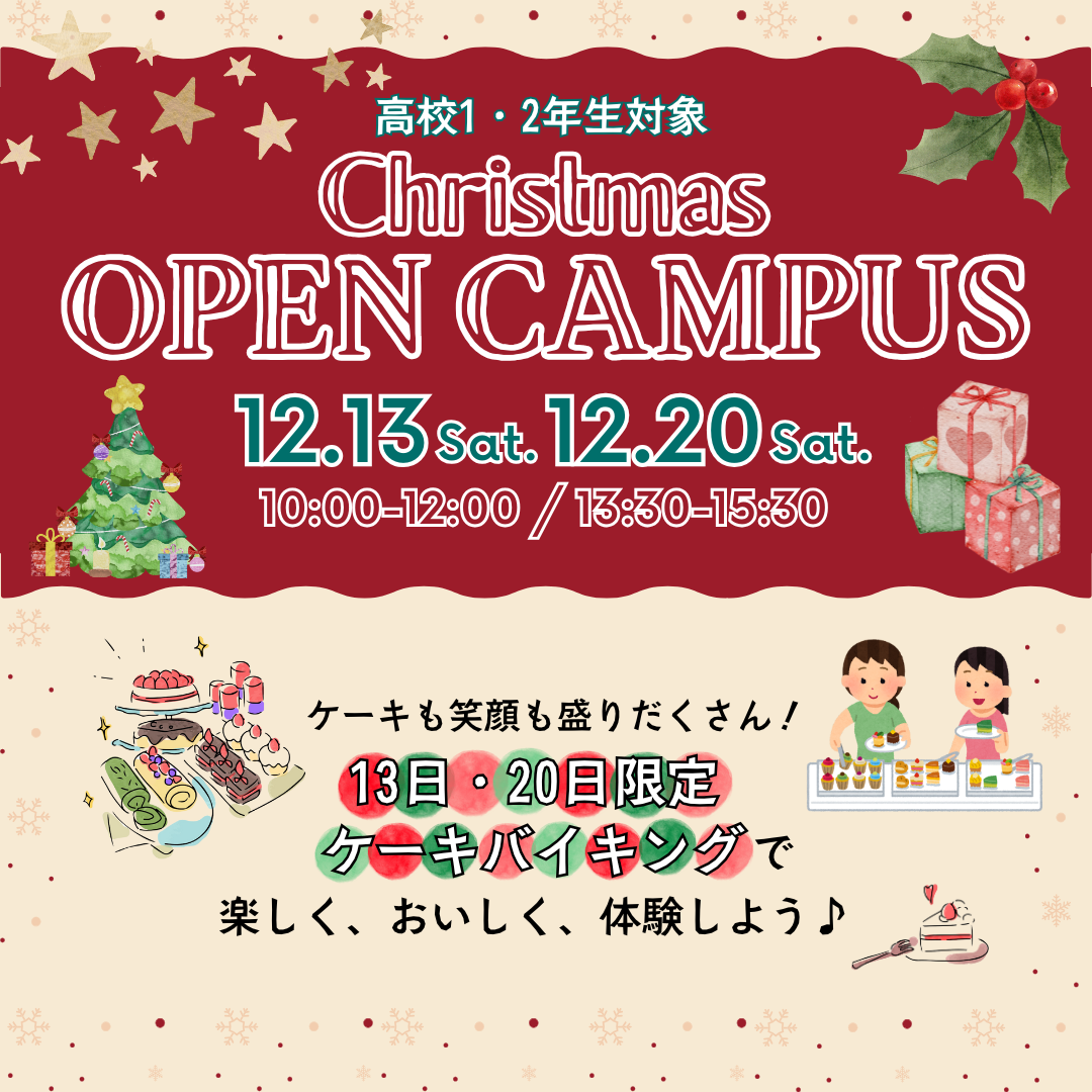12月13日(土)、12月20日(土)開催のクリスマスオープンキャンパスのご案内です🌟
