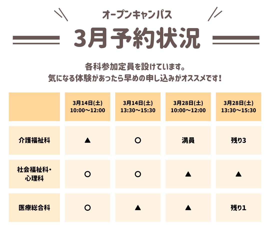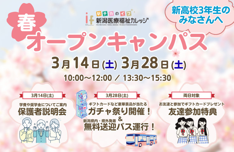 3月14日(土)、3月28日(土)開催の春のオープンキャンパスのご案内です📣